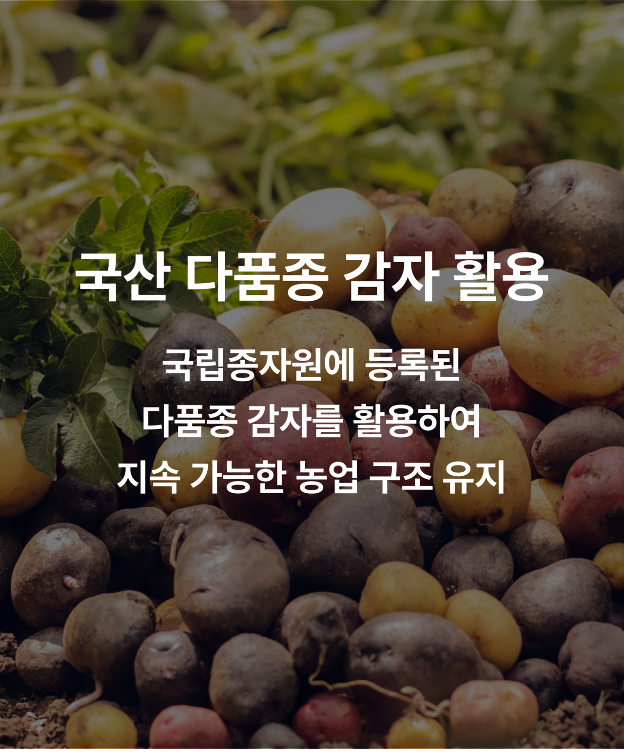 감자밭은 27%의 다양한 국산 품종 감자를 사용함으로써감자의 우수성과 다양성을 보존하고,