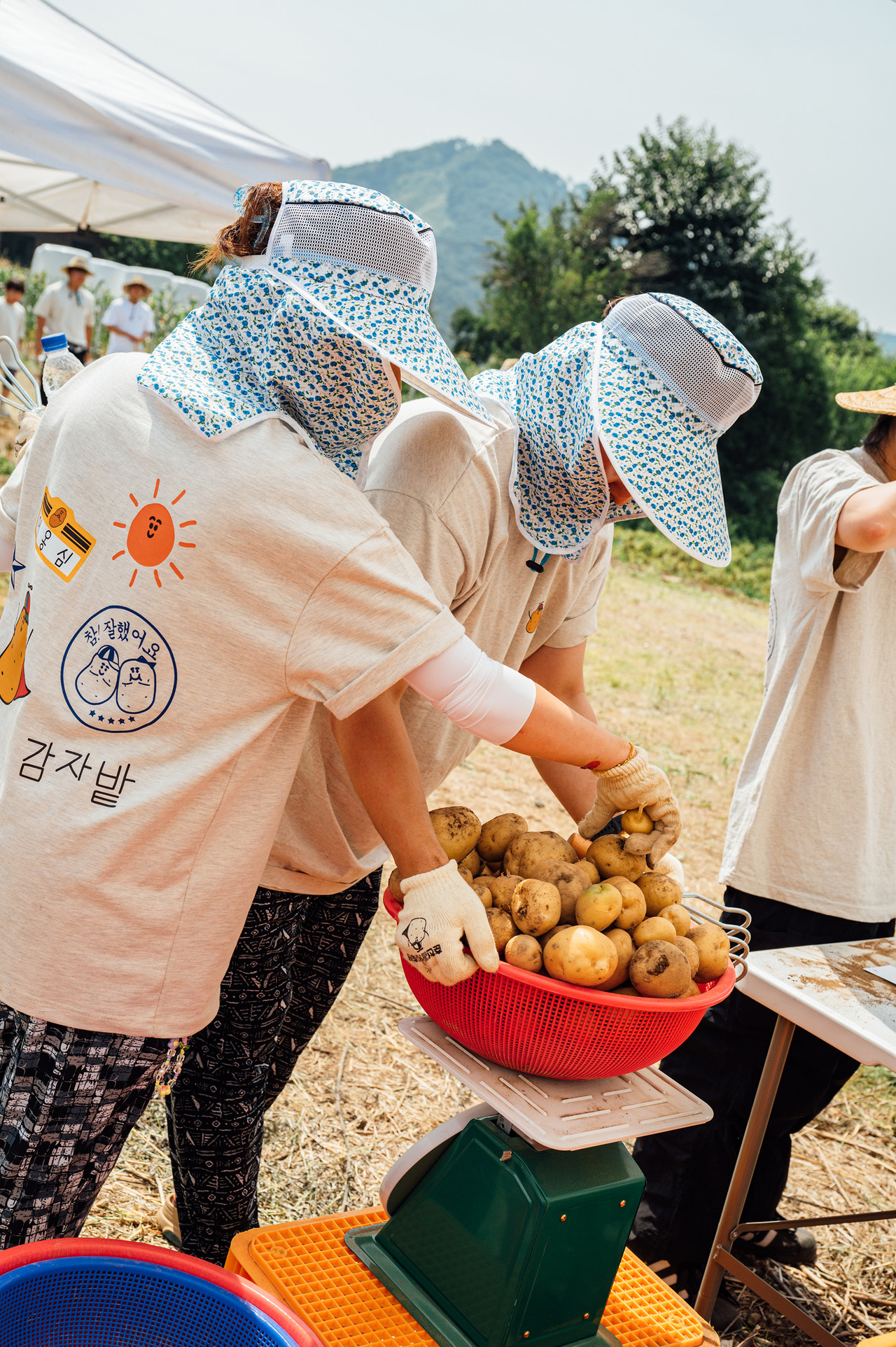 매해 여름, 카페 감자밭에는아이부터 어른까지 많은 분들이축제를 즐기러 와주셨습니다.사전에 제공해 드린감자밭 티셔츠와 고쟁이 바지,목장갑까지 착용하면 축제 즐길 준비는 끝!감자빵 먹으며 옹심이 캐릭터와 사진 찍고,널찍한 감자밭으로 나가면본격적인 프로그램들이 기다리고 있습니다!
